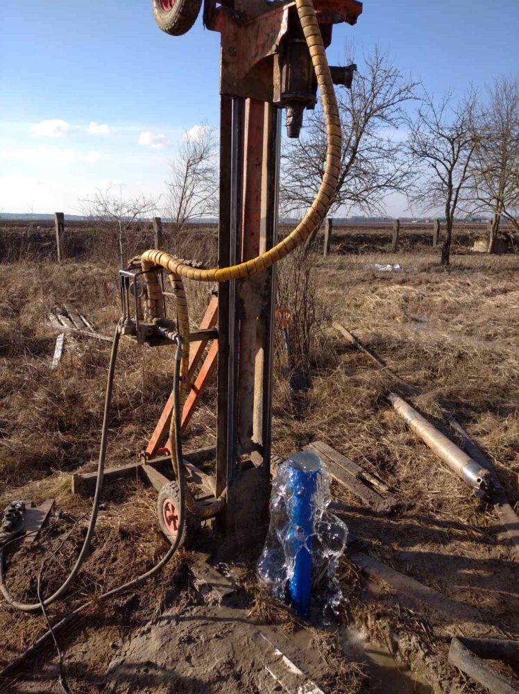 Весь процесс - от начала бурения до пуска воды занимает от 2-3 часов.
