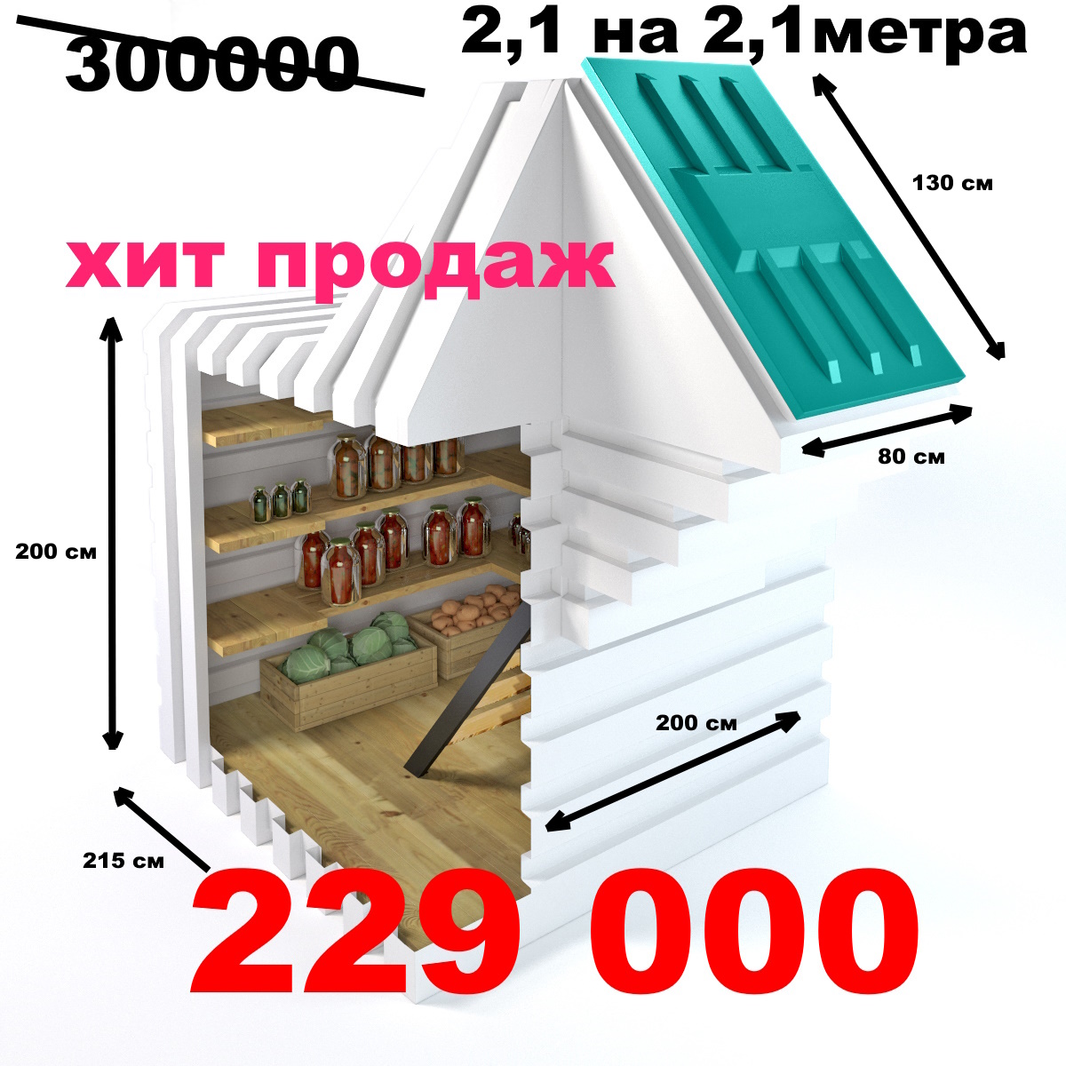 Погреб «Рекорд 210×210 см» создан для дач и загородных домов с огородом среднего размера.