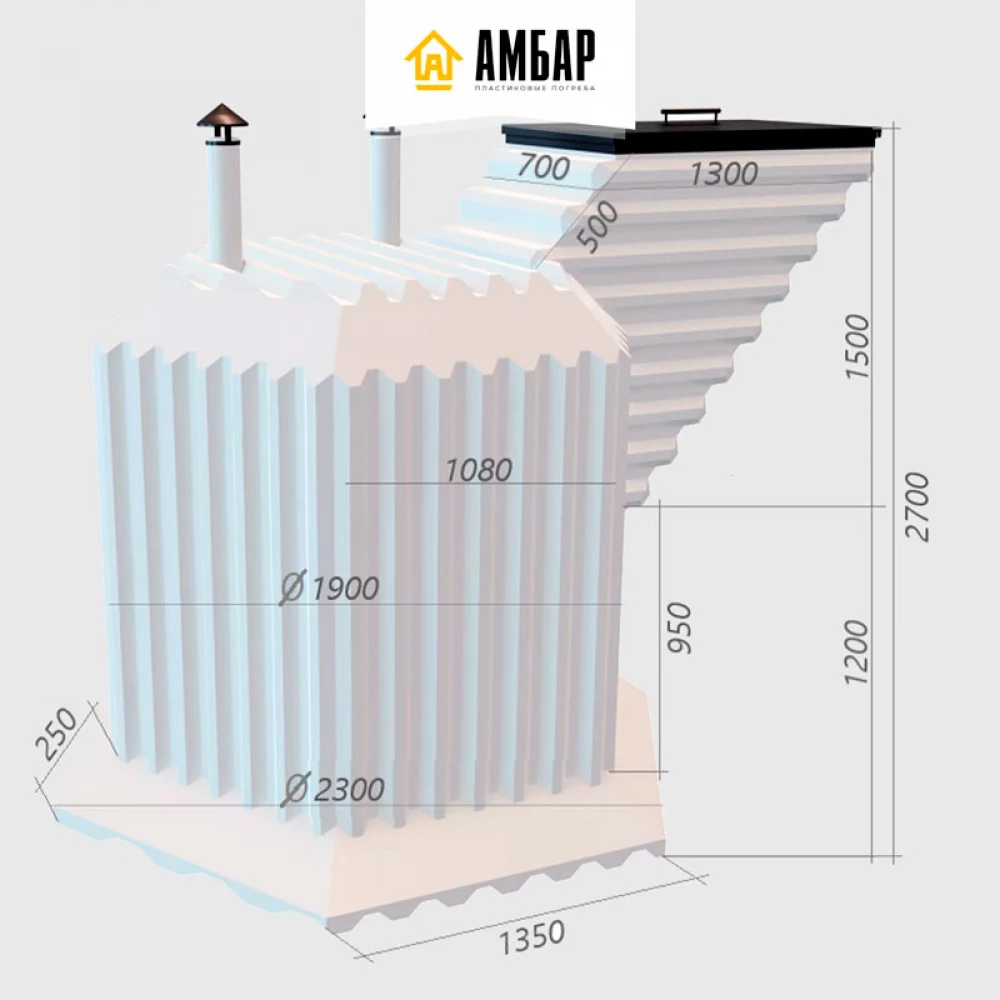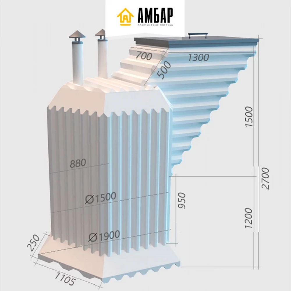 Конструкция двухслойная: внутренний и наружный слои разделены воздушной прослойкой, выполняющей роль надежной теплоизоляции. Это позволяет поддерживать оптимальный температурный режим внутри погреба.