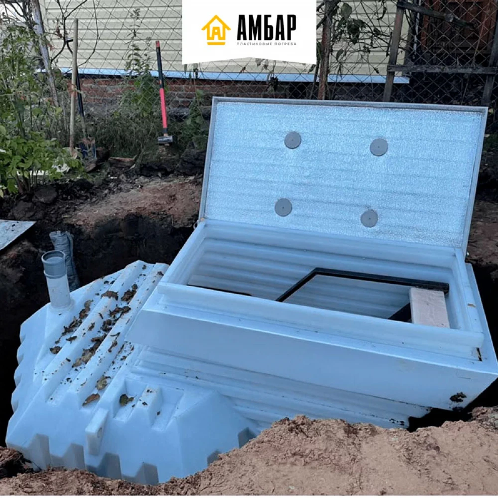 Корпус погреба изготовлен по специальной технологии ротационного формования, которая обеспечивает ему повышенную прочность. Материалом служит ударопрочный пищевой пластик, устойчивый к УФ-излучению.