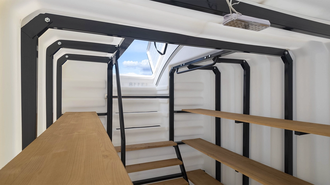 Модель Prestige L имеет габариты 3000x1900x2700 и объём 10 кубических метров, в неё помещается до 250 банок (3-х литровых) и 25 ящиков (стандартных).